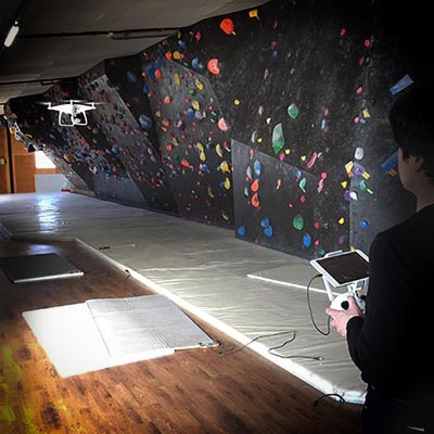 前後左右のセンサーを使用して、建物内や通路の撮影も可能です。不安定な足元でも、ドローンなら安定した撮影が行えます。ただし、狭い廊下は飛行できません。※OSMOというブレを防ぐ手持ちカメラもございます。